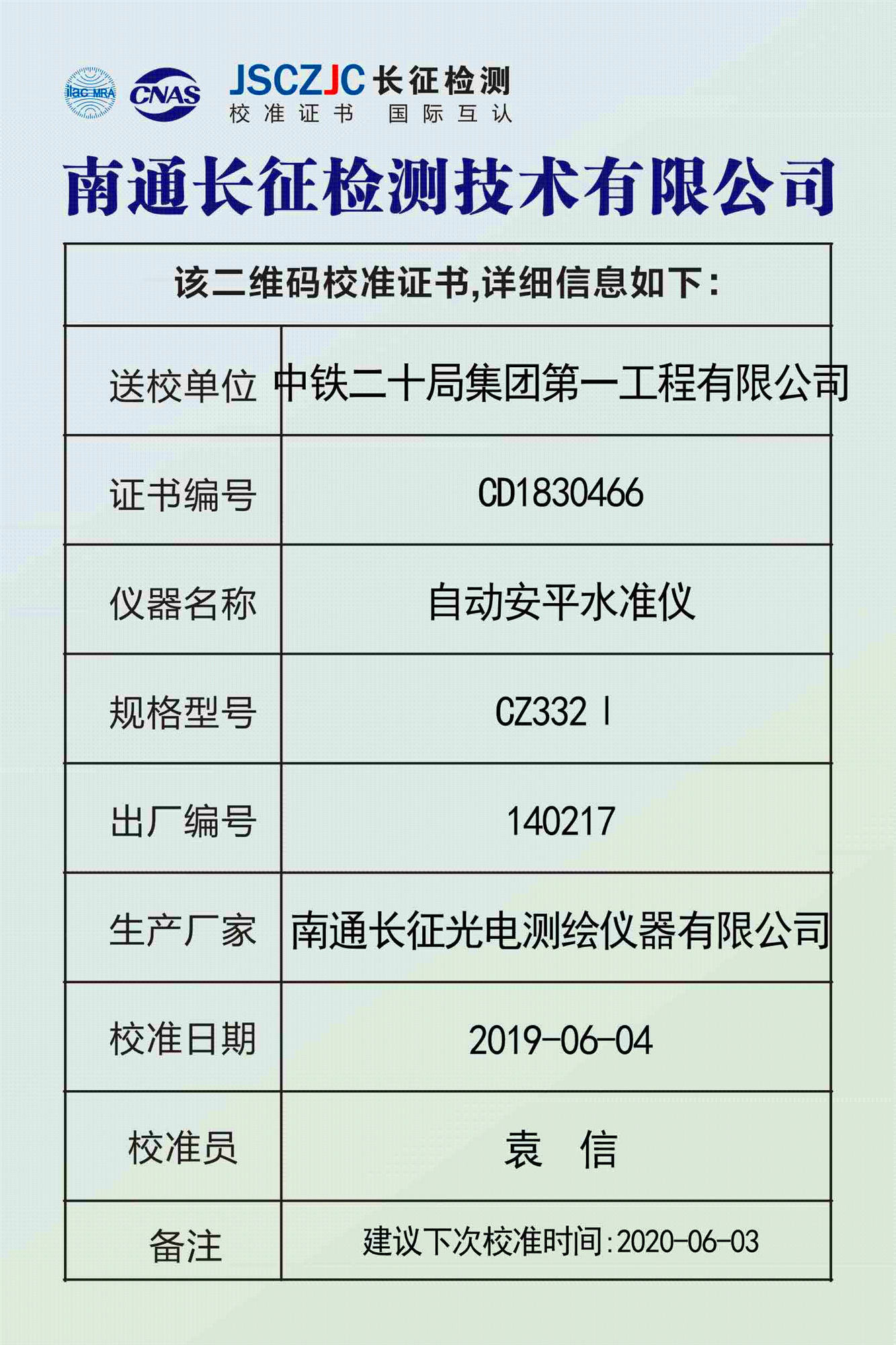 CD1830466中铁二十局集团第一工程有限公司 -