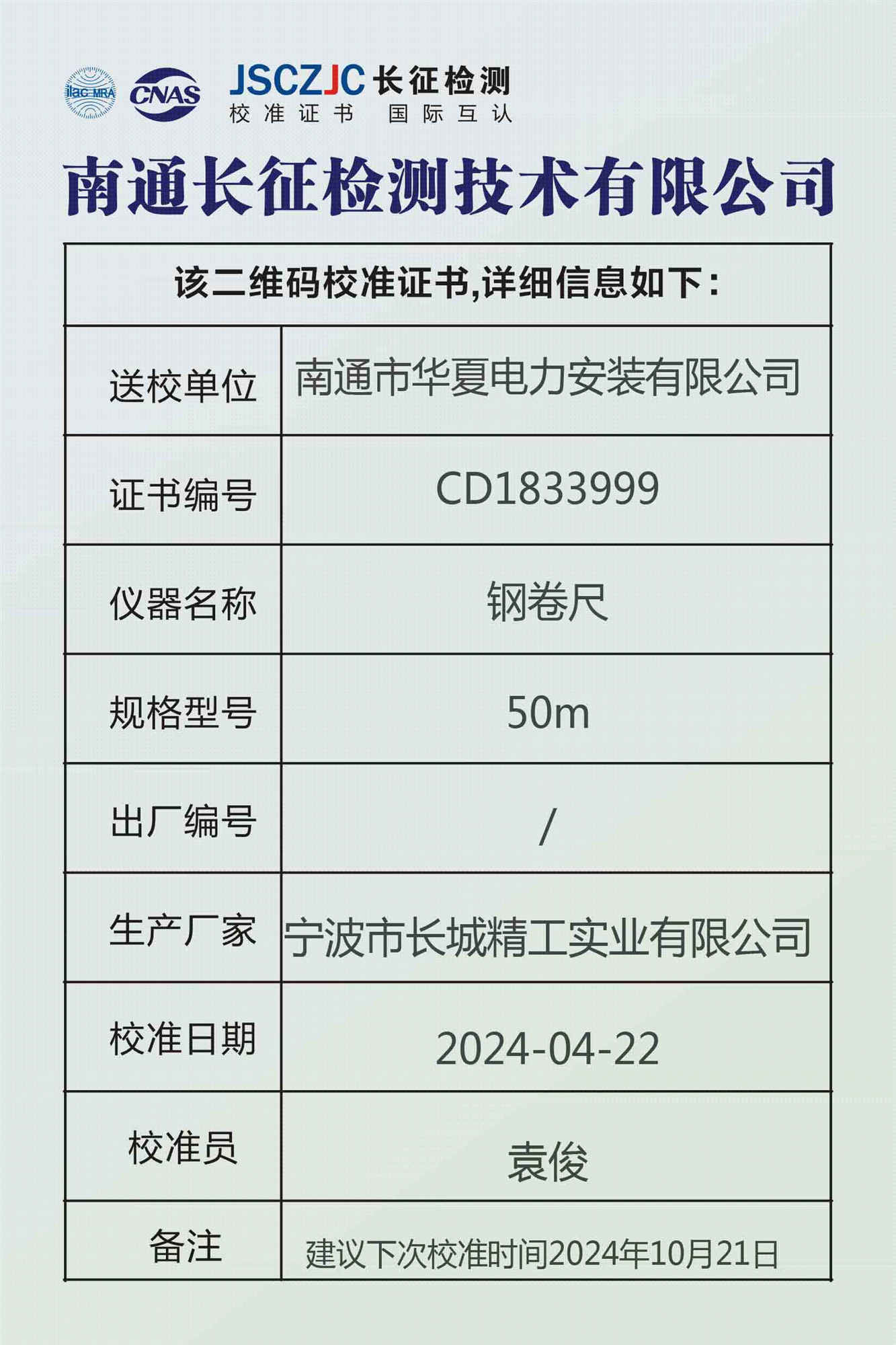 CD1833999 南通市华夏电力安装有限公司 -