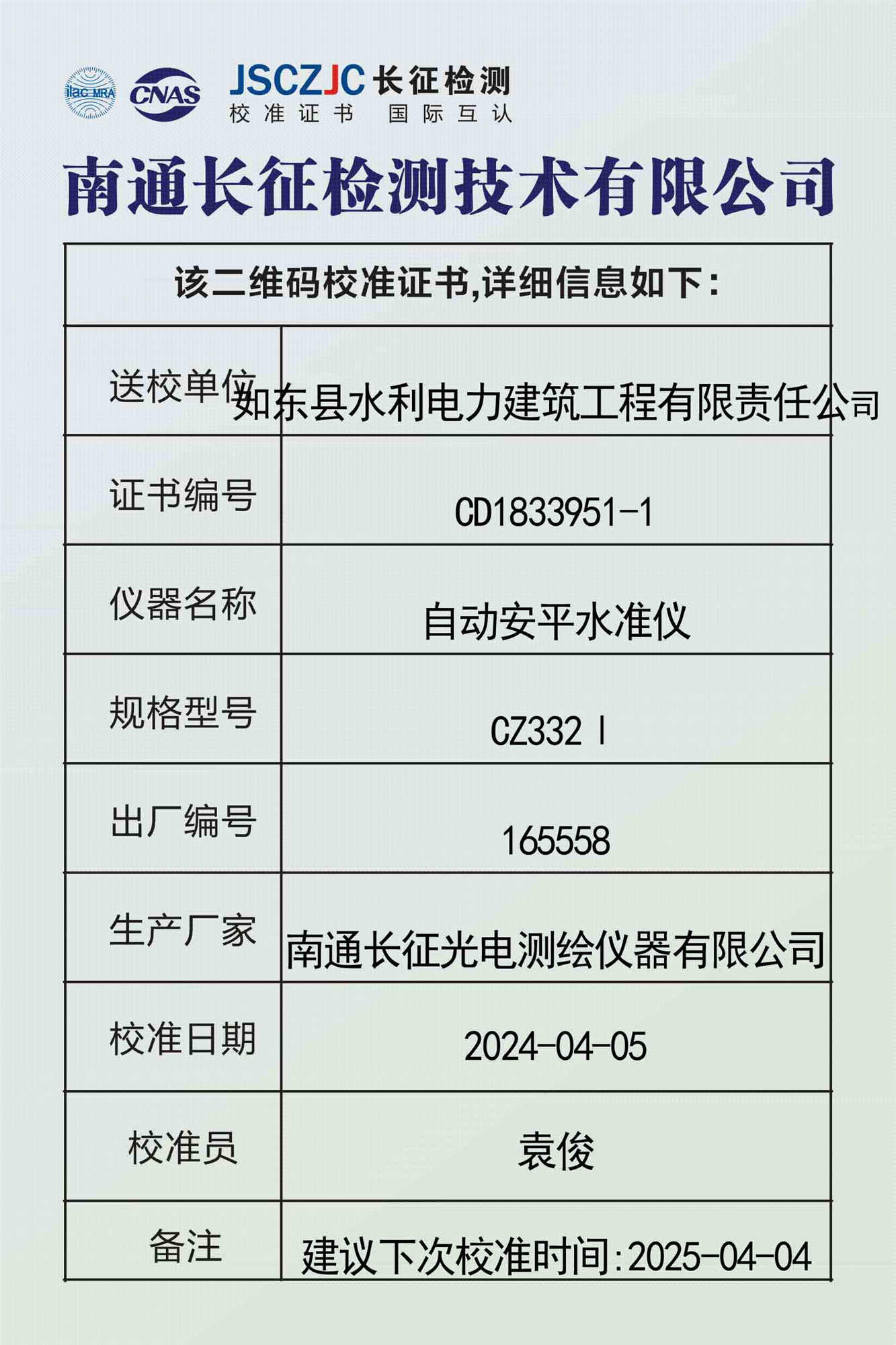 CD1833951-4 如东县水利电力建筑工程有限责任公司 -