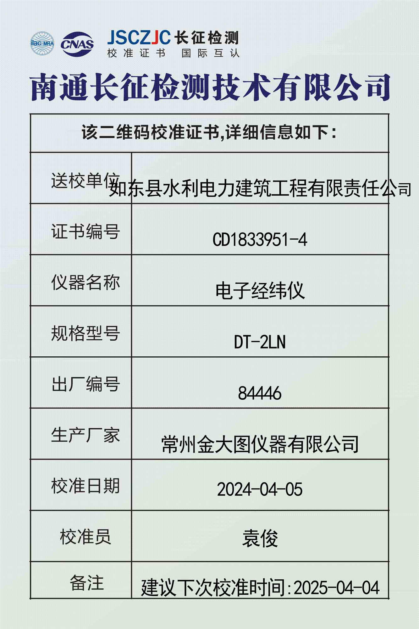 CD1833951-2 如东县水利电力建筑工程有限责任公司 -