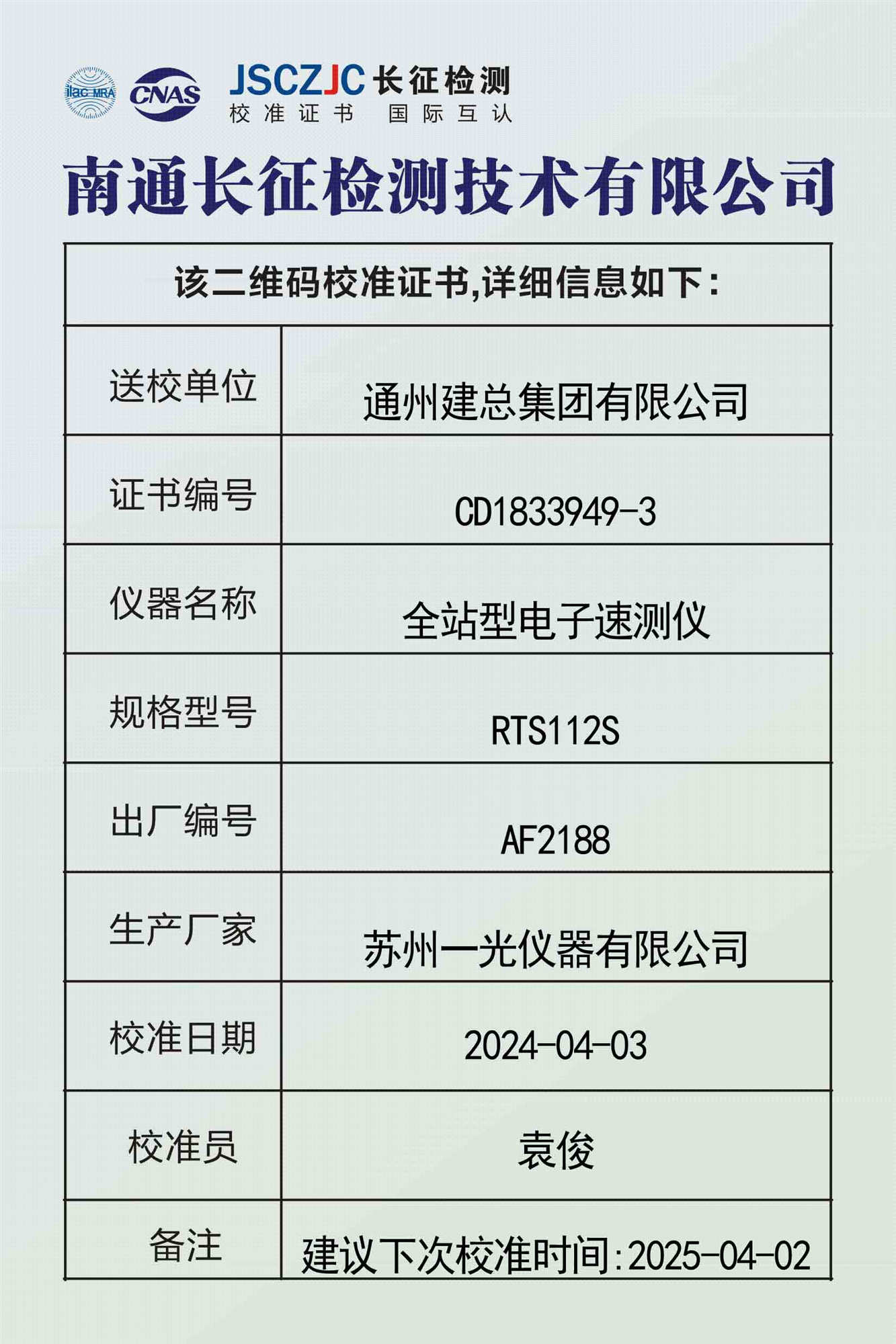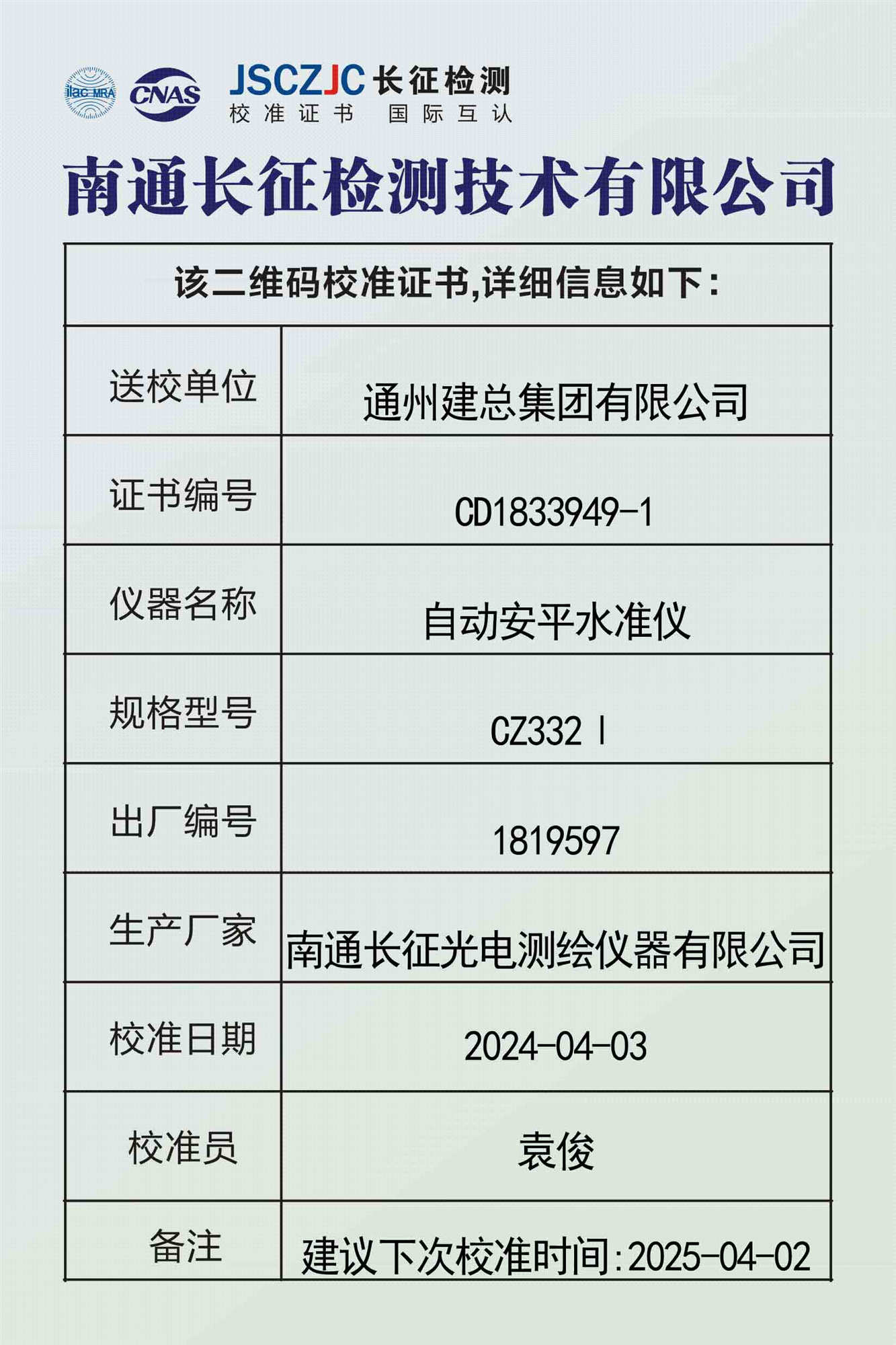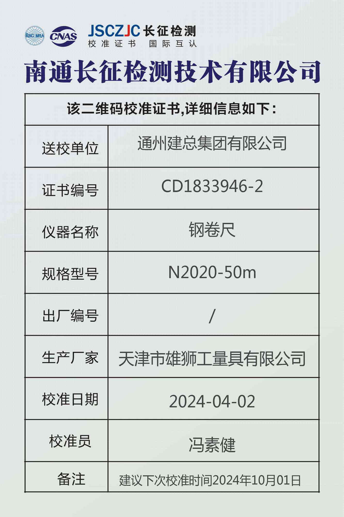 CD1833946-2 通州建总集团有限公司 塔尺 -