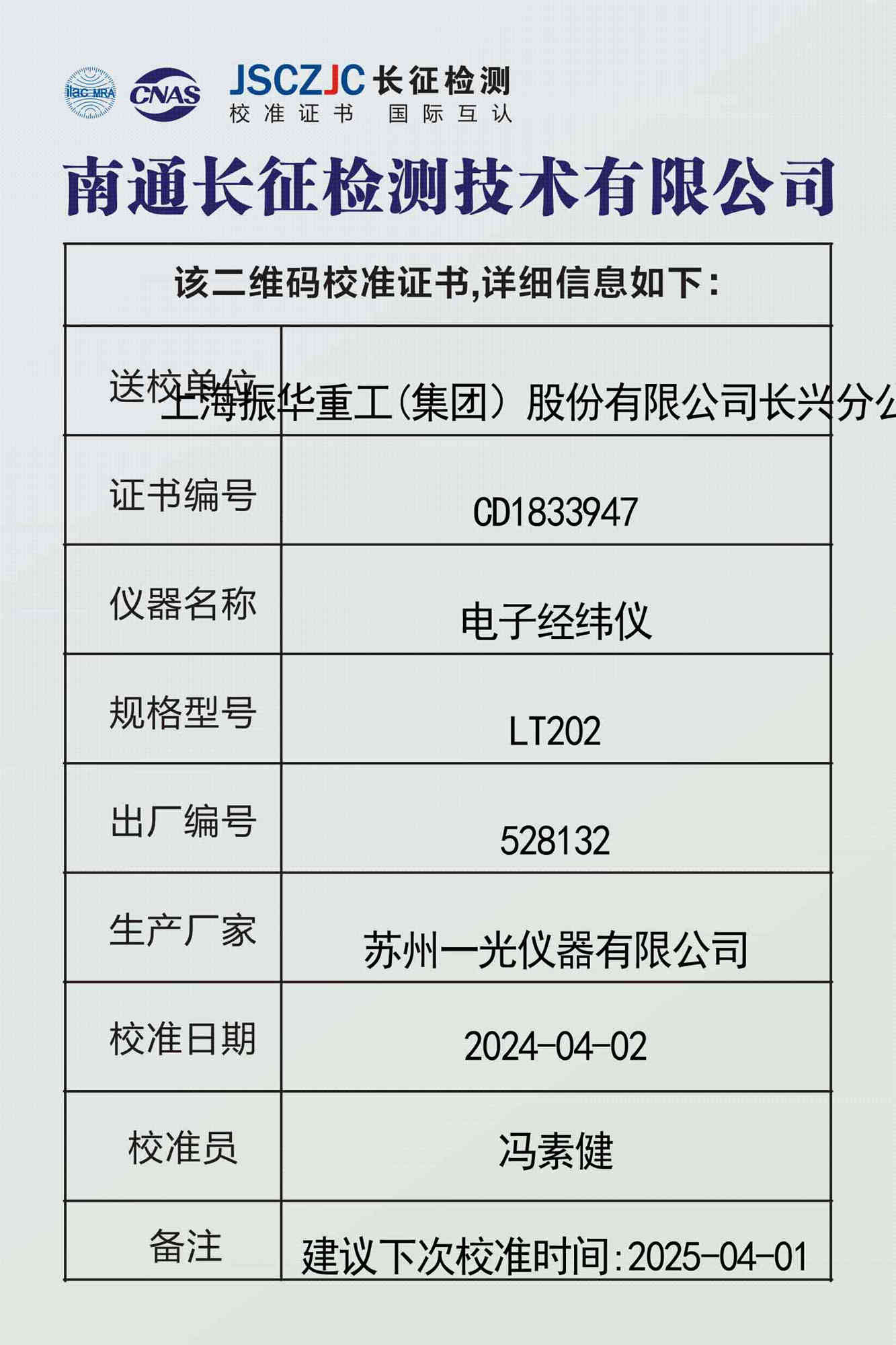 CD1833947 上海振华重工(集团)股份有限公司长兴分公司 -