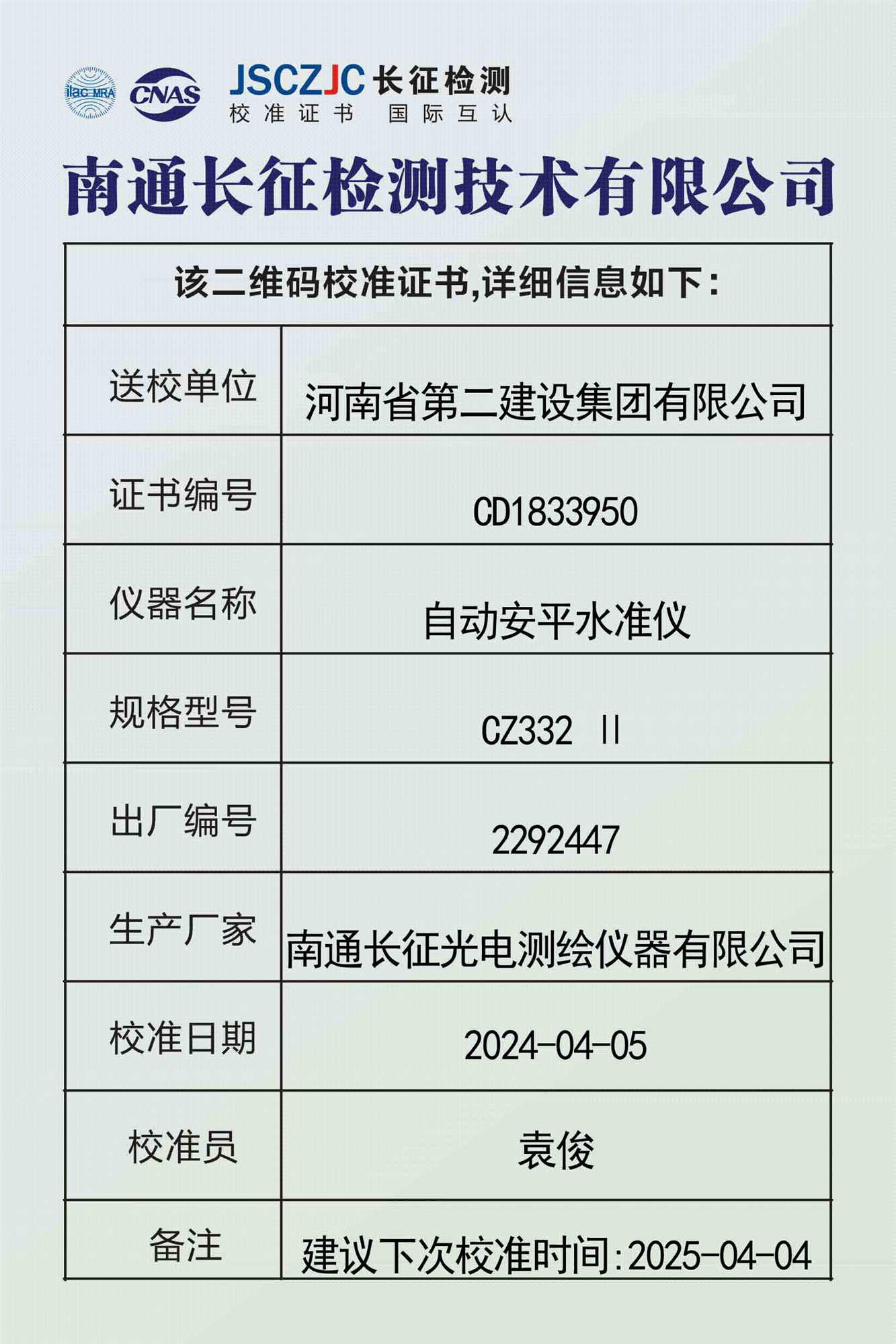 CD1833950 河南省第二建设集团有限公司 -
