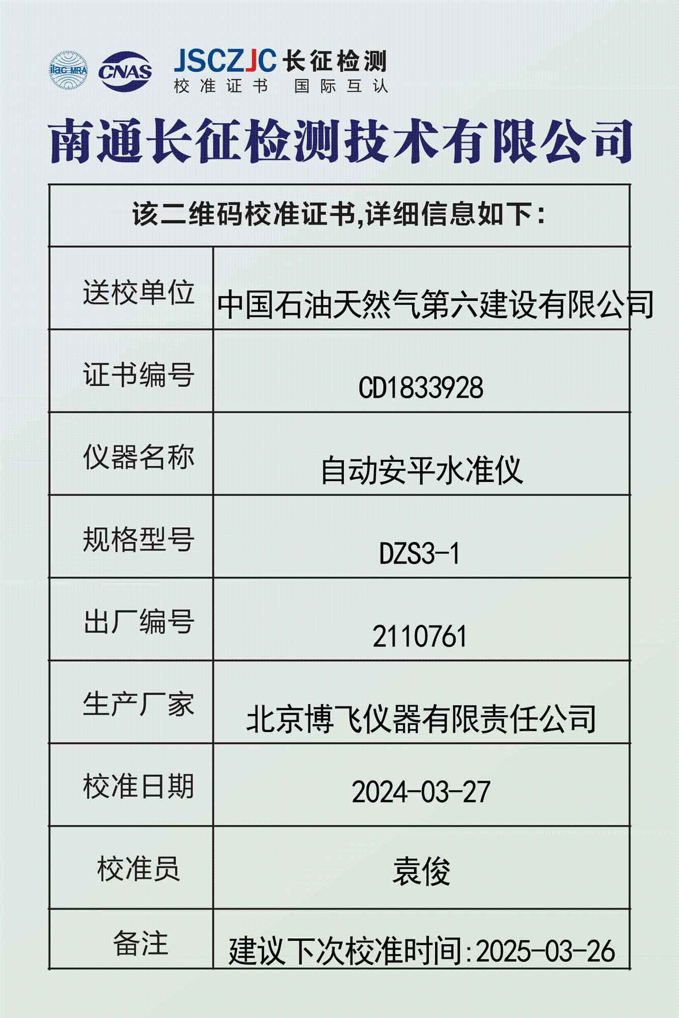 CD1833928 中国石油天然气第六建设有限公司 -