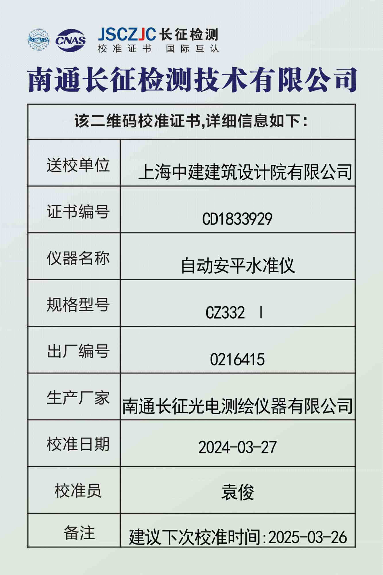 CD1833925 上海中建建筑设计院有限公司 -