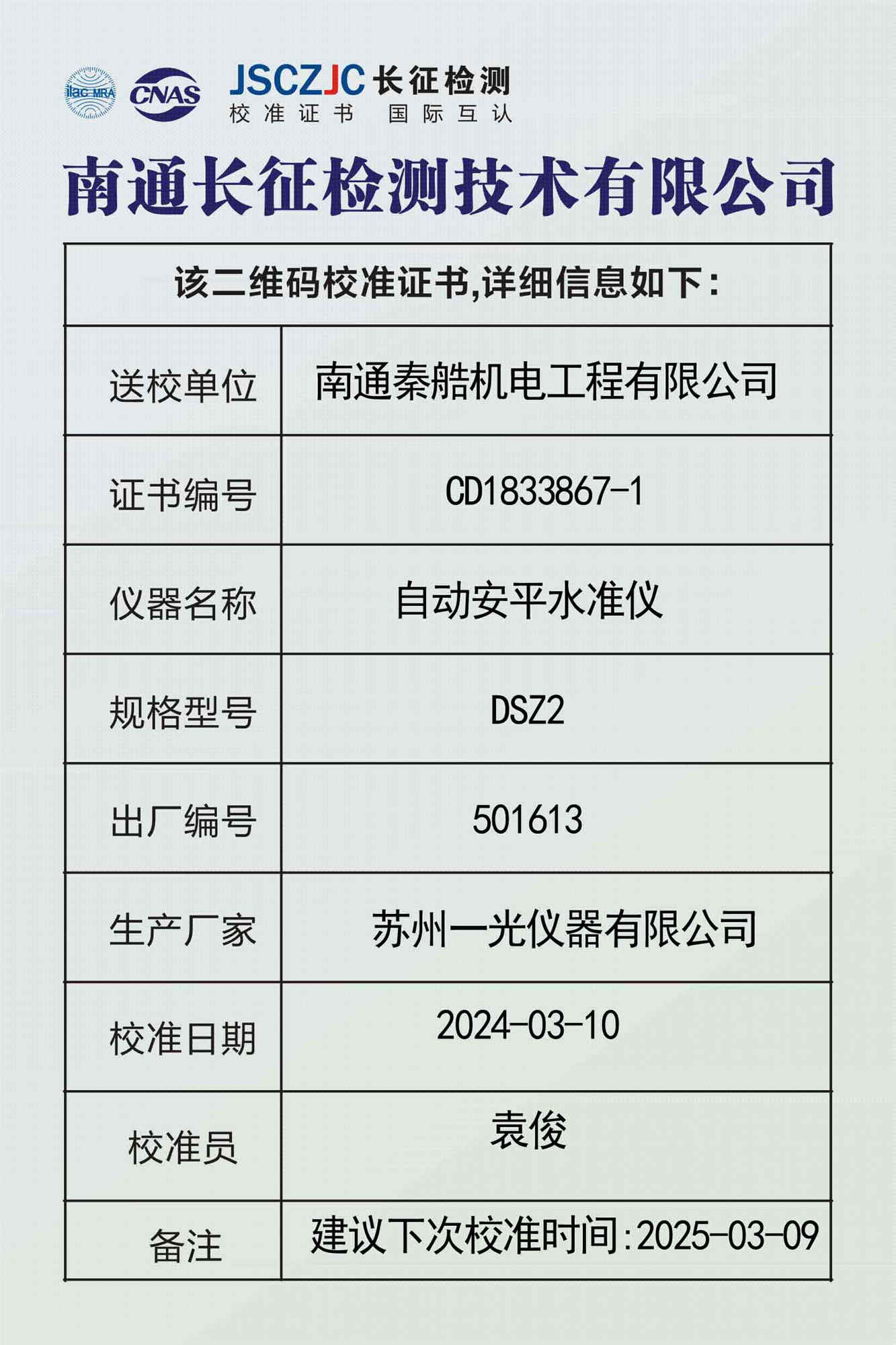 CD1833867-1 南通秦艁机电工程有限公司 -