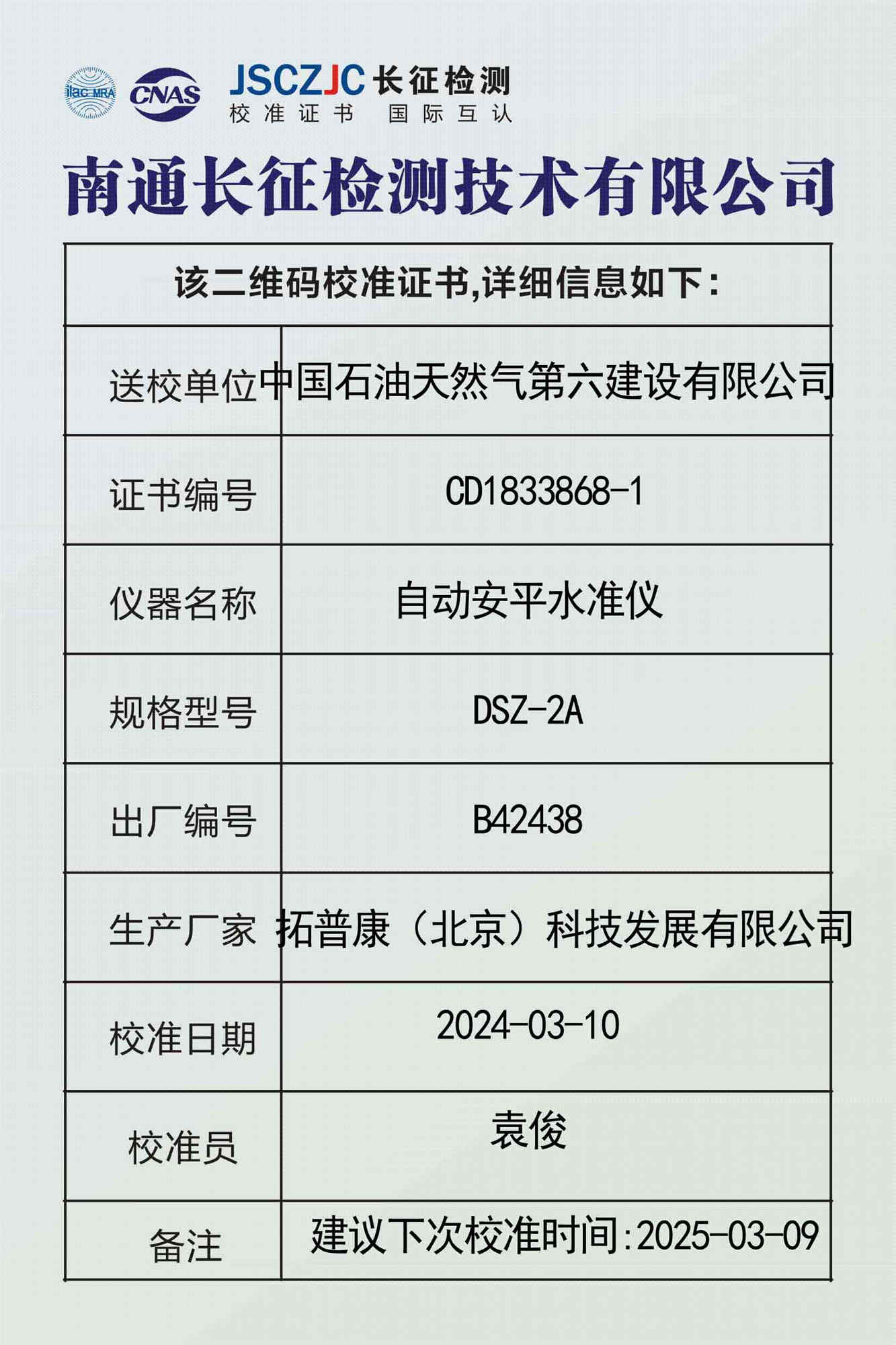 CD1833868-1 中国石油天然气第六建设有限公司 -