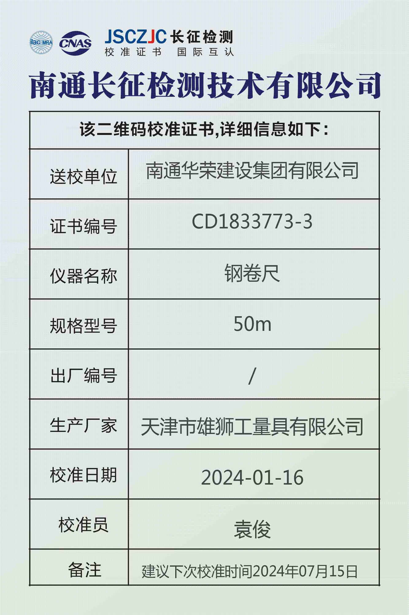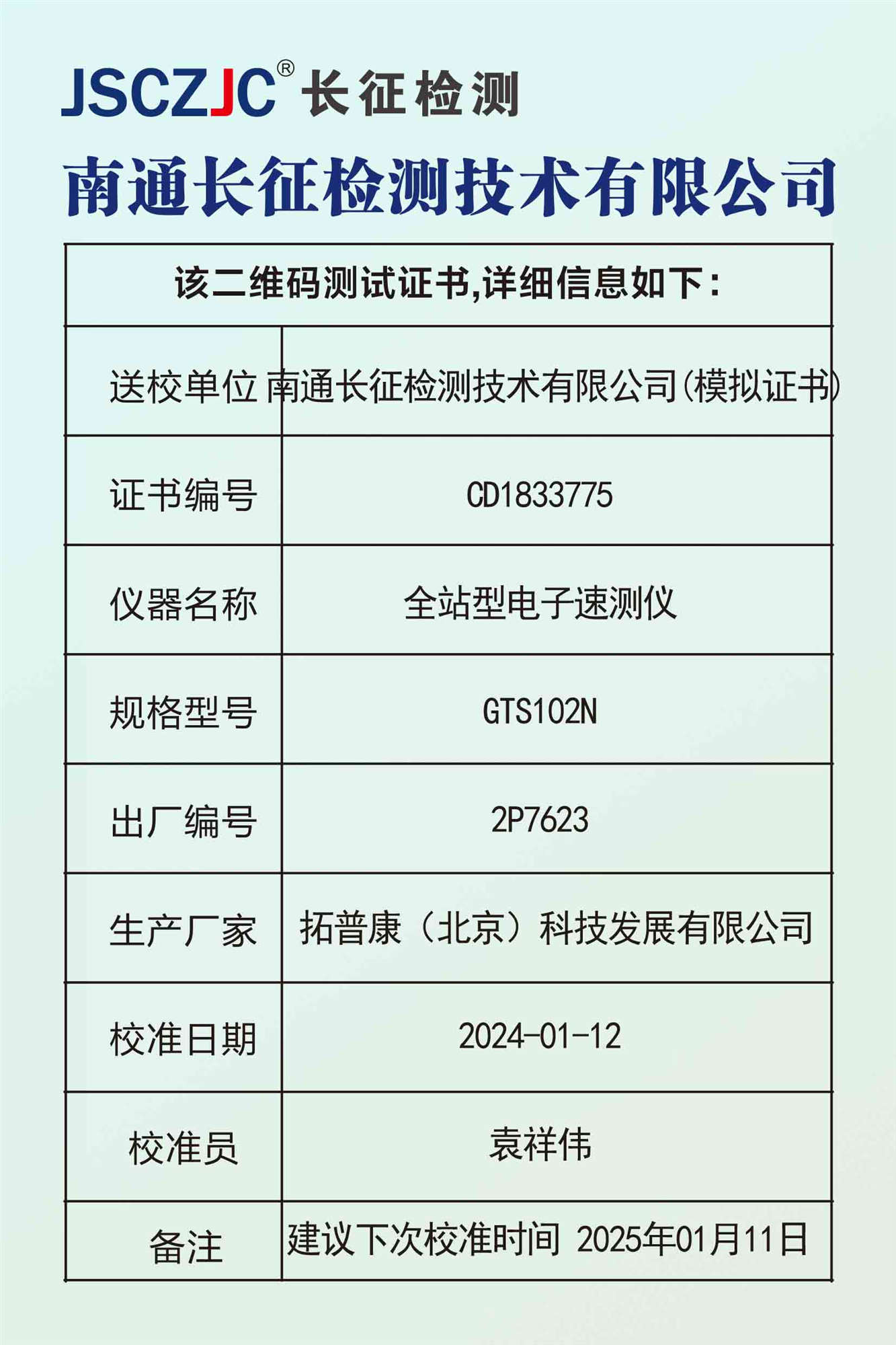 CD1833776 南通长征检测技术有限公司(模拟证书) -