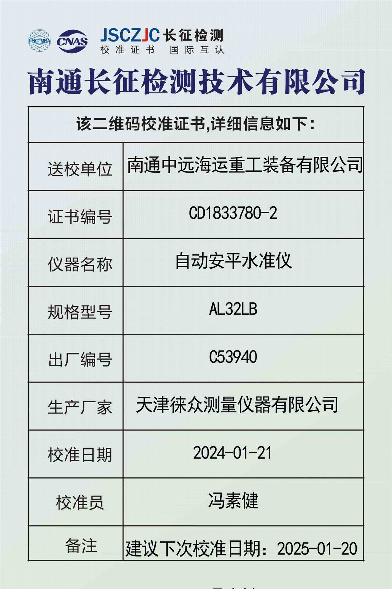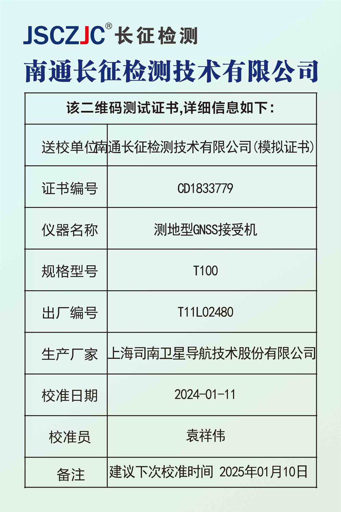 CD1833778 南通长征检测技术有限公司(模拟证书) -
