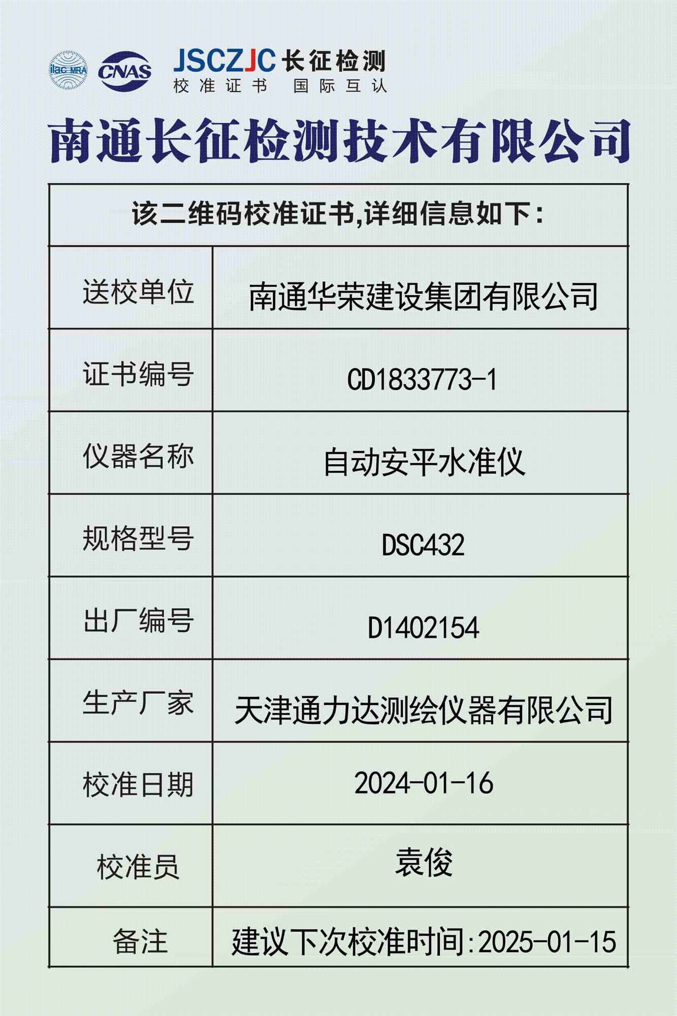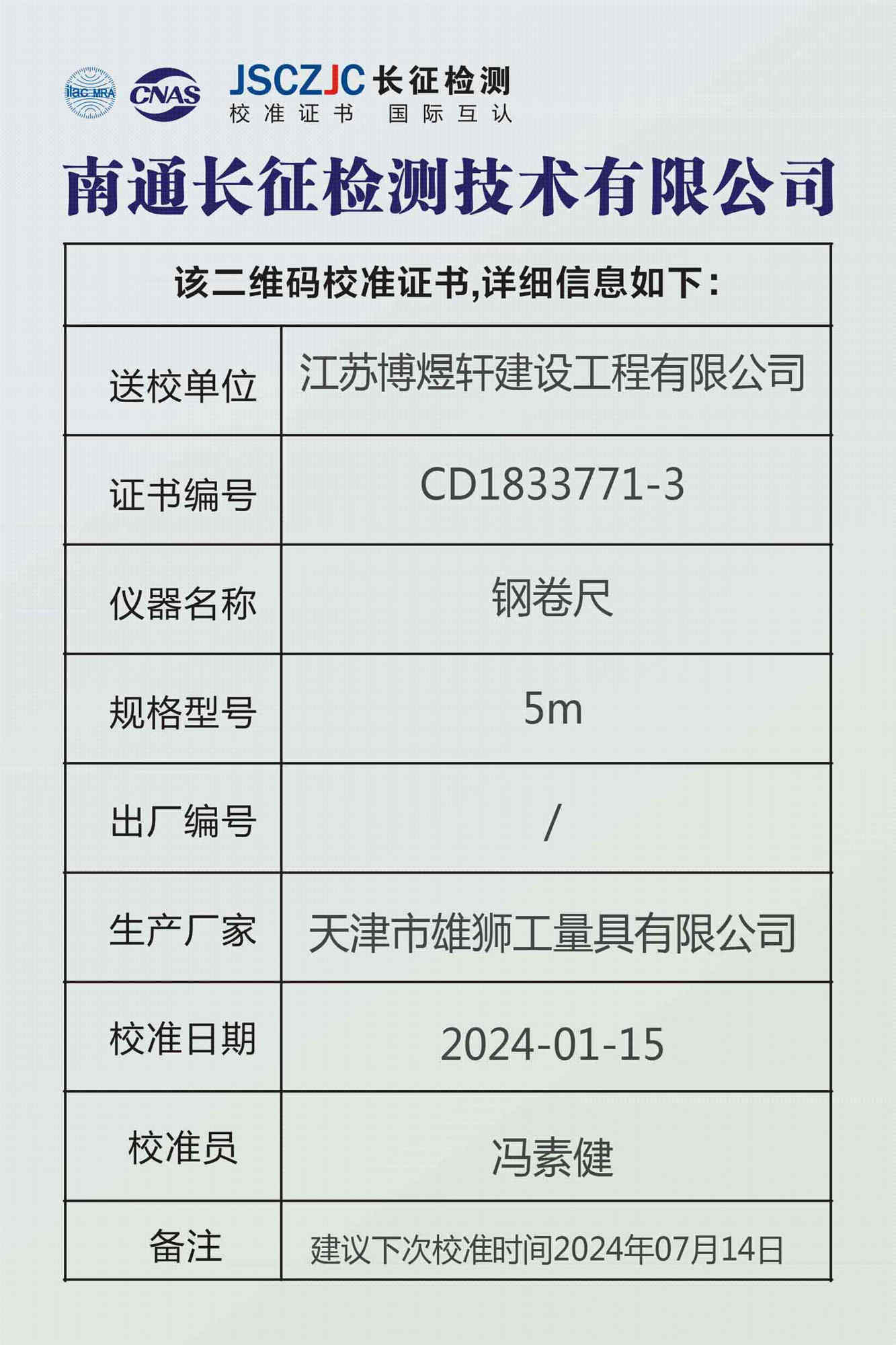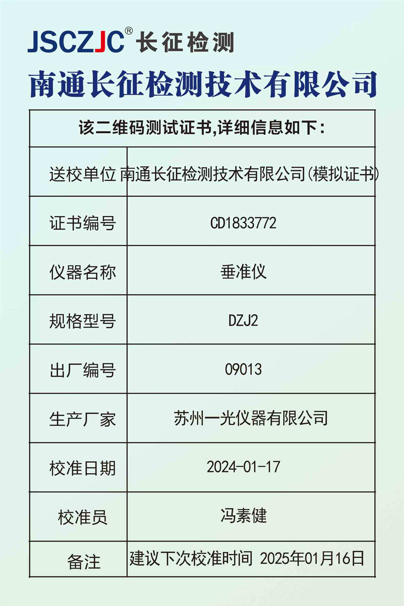 CD1833772 南通长征检测技术有限公司(模拟证书) -