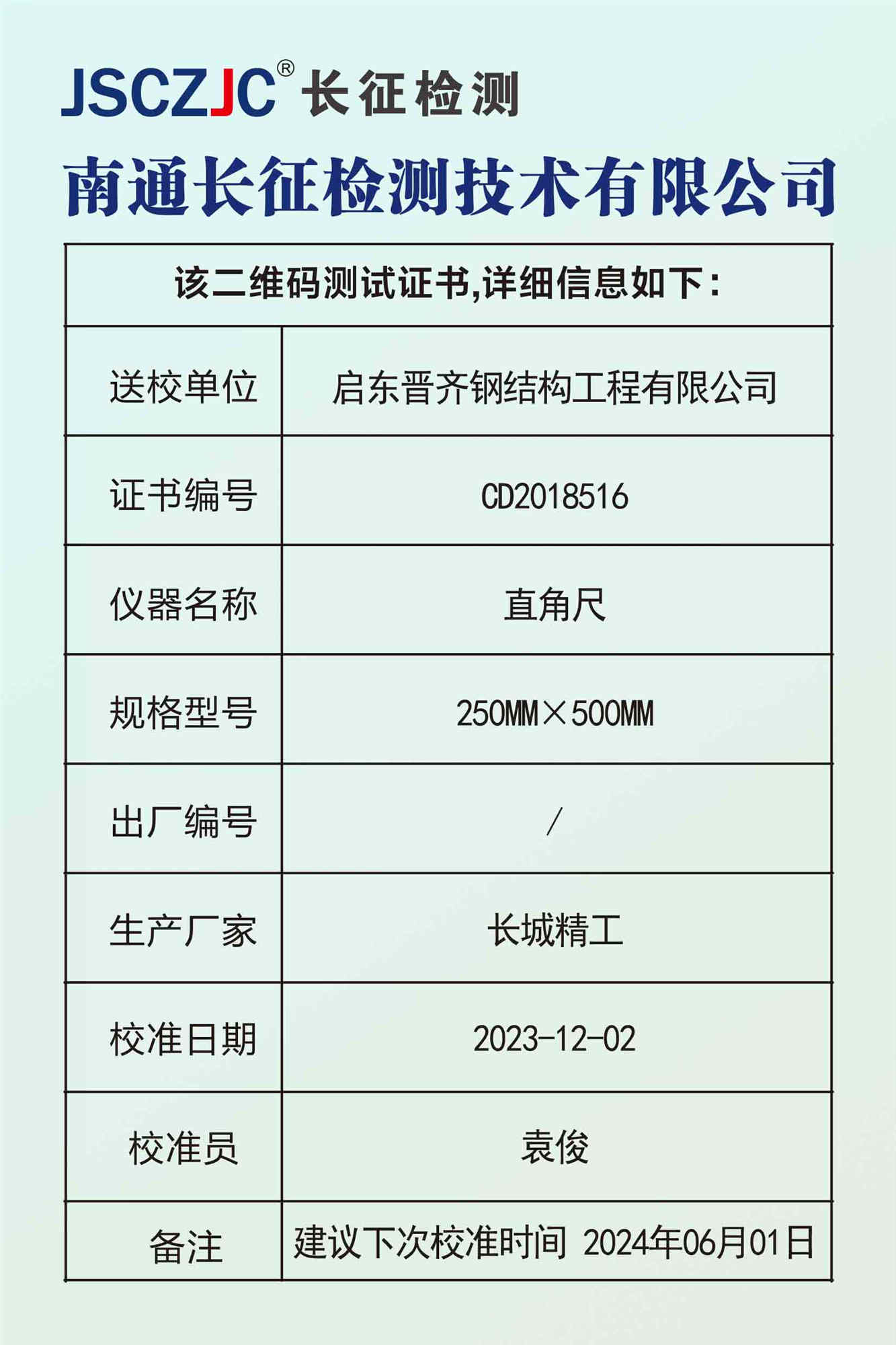 CD2018516 启东晋齐钢结构工程有限公司 -