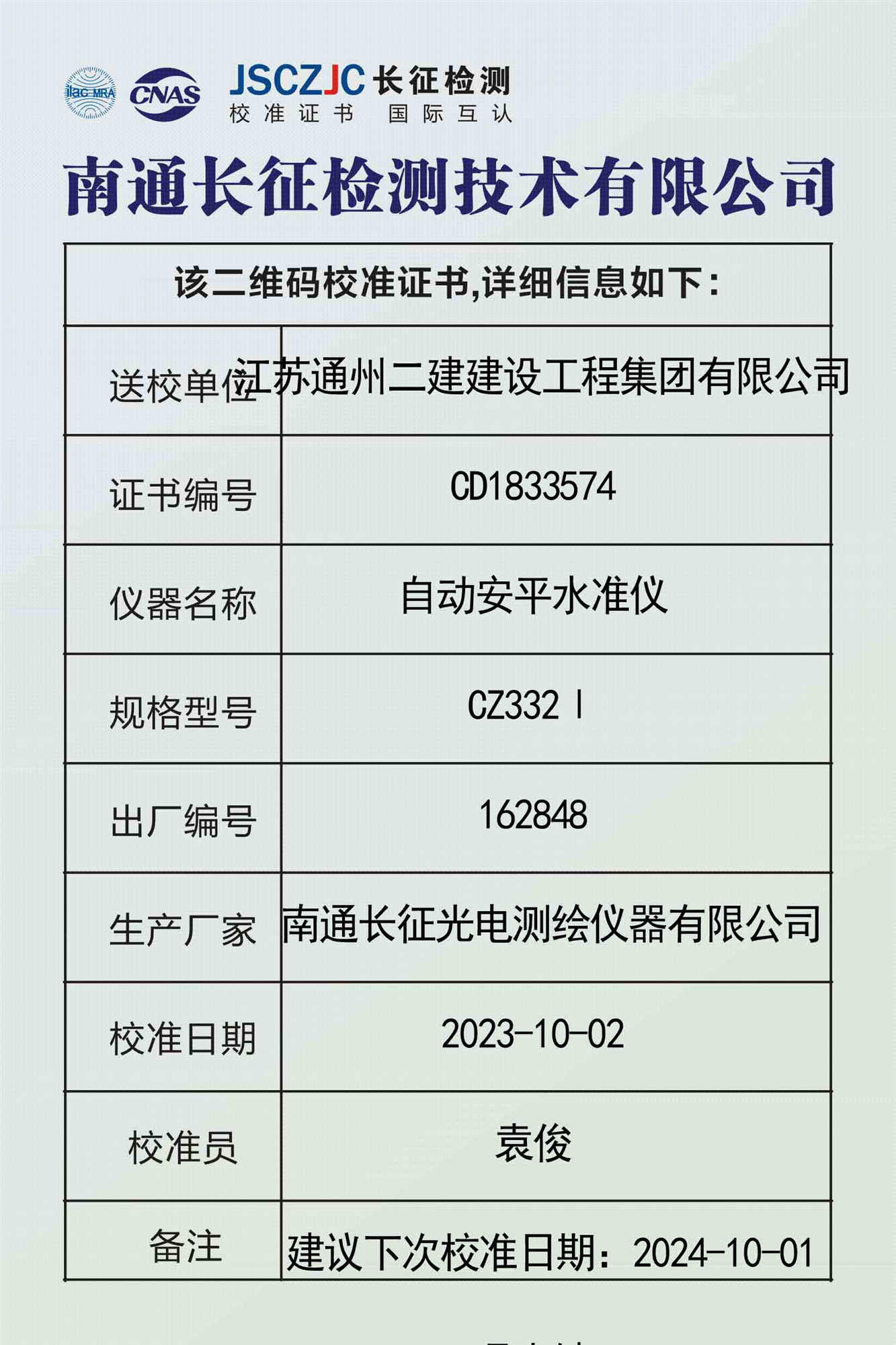 CD1833574 江苏通州二建建设工程集团有限公司 -