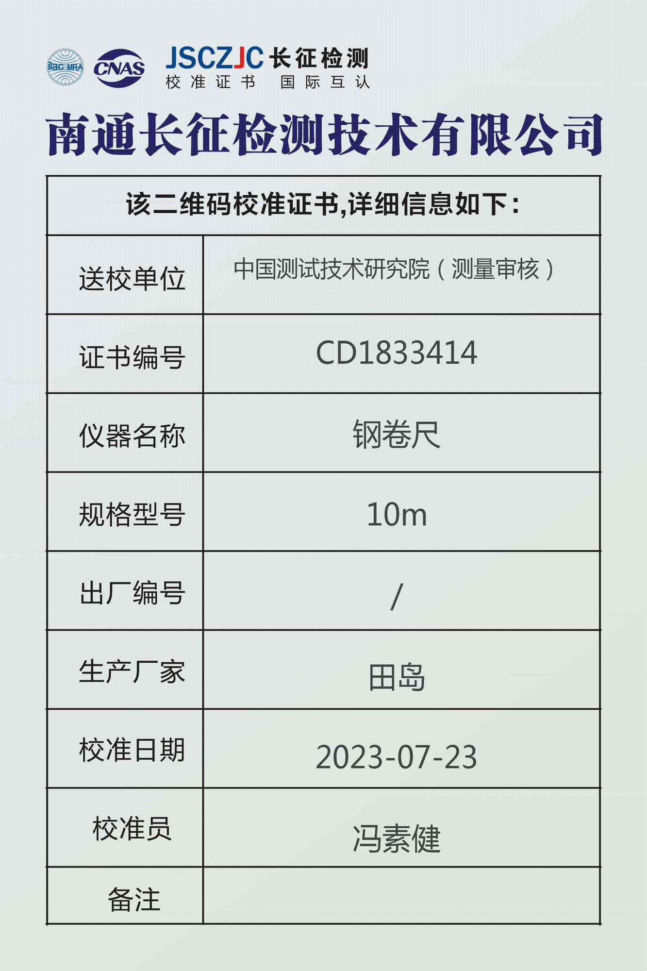 CD1833414 中国测试技术研究院(测量审核) -