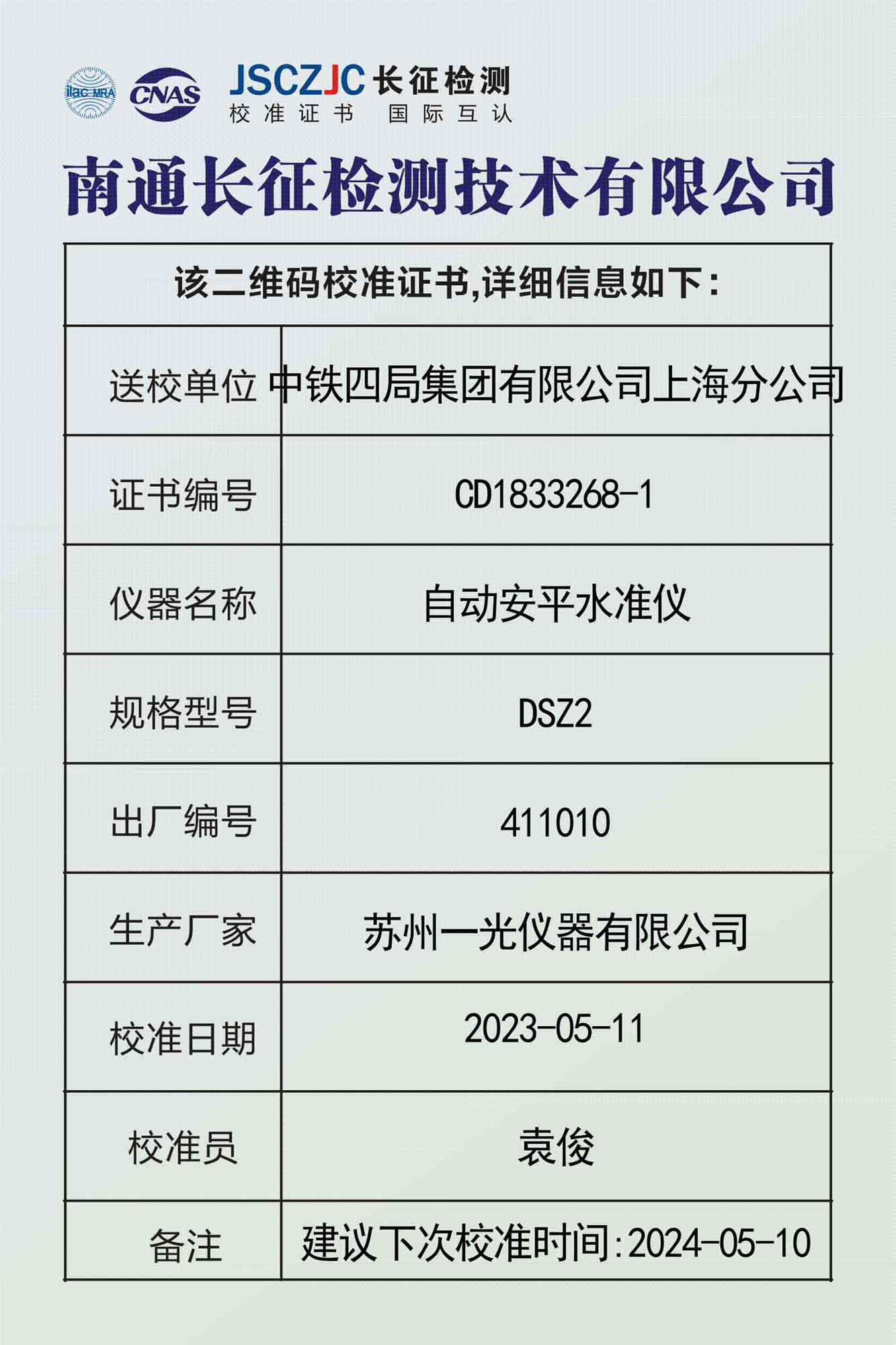 CD1833268-2 中铁四局集团有限公司上海分公司 -