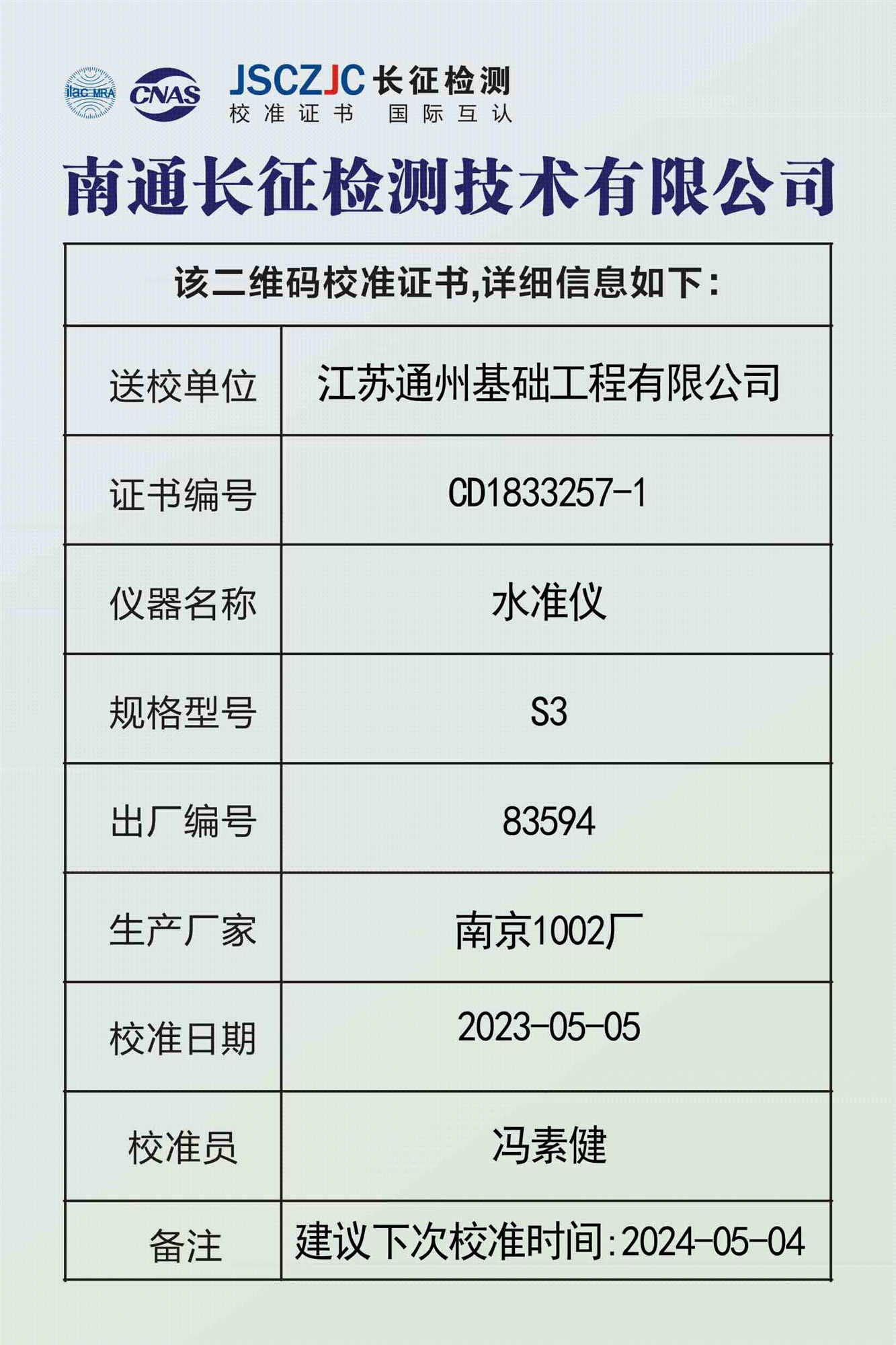 CD1833257-1 江苏通州基础工程有限公司 -