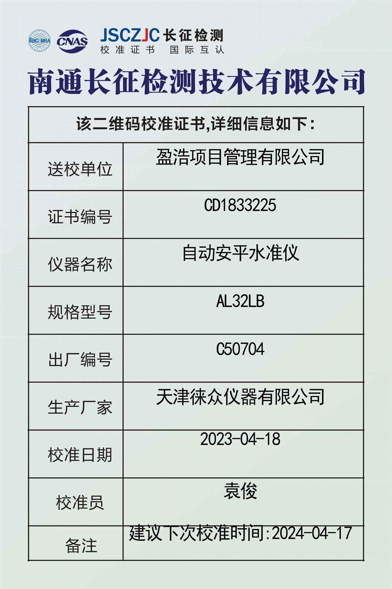 CD1833225 盈浩项目管理有限公司 -