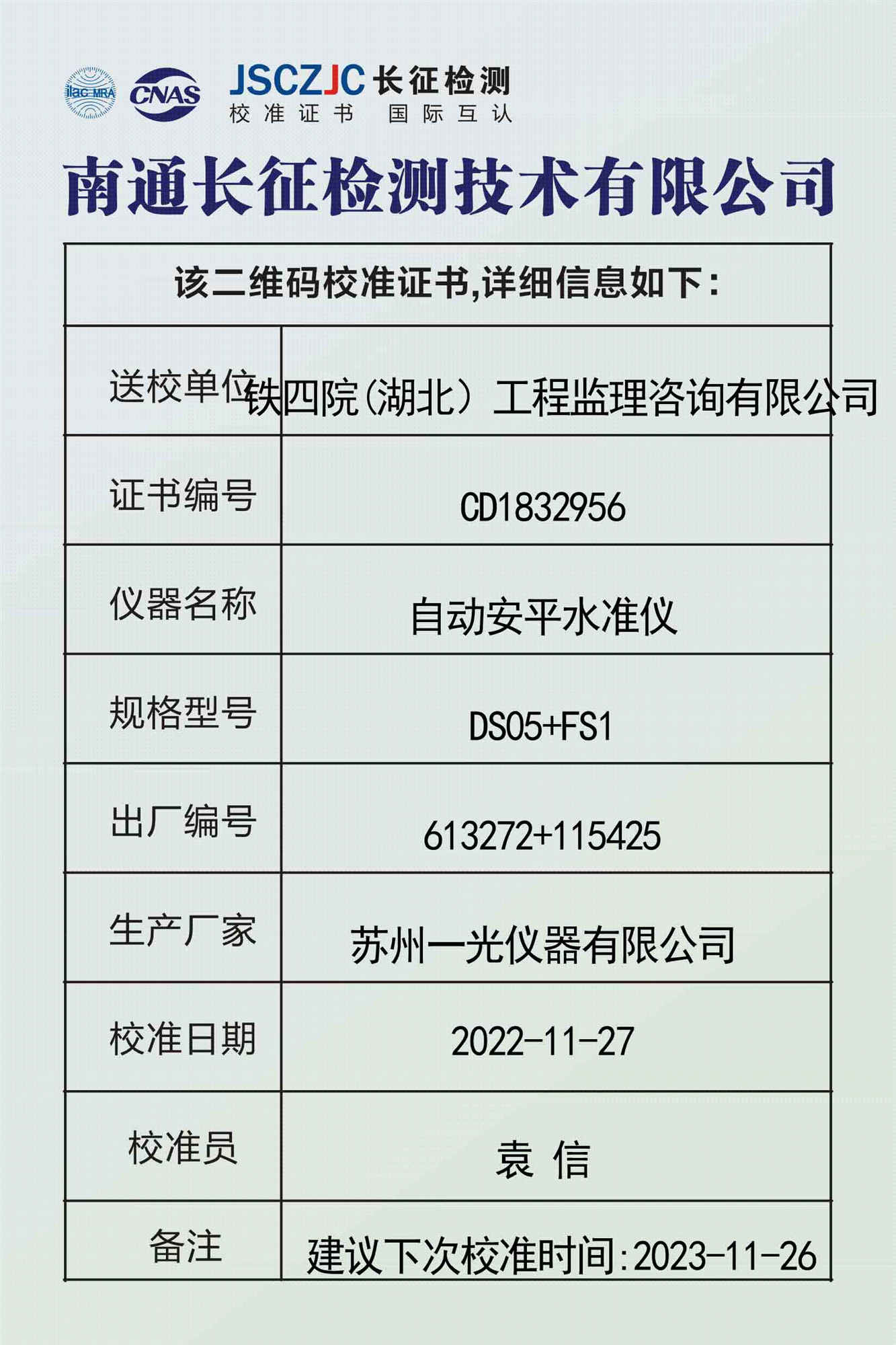 CD1832956 铁四院(湖北)工程监理咨询有限公司 -