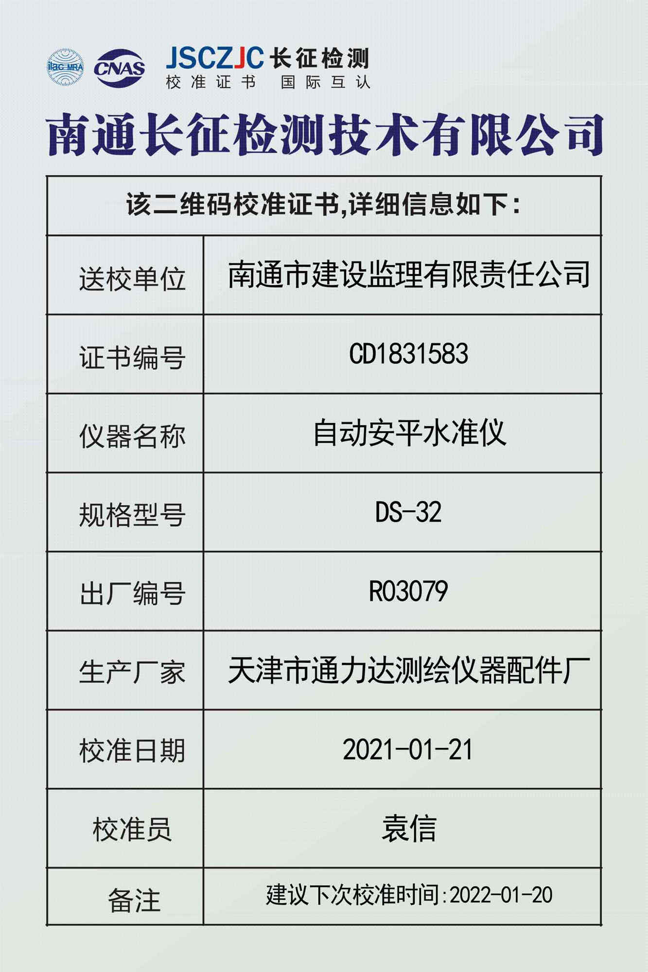 CD1831583 南通市建设监理有限责任公司 -