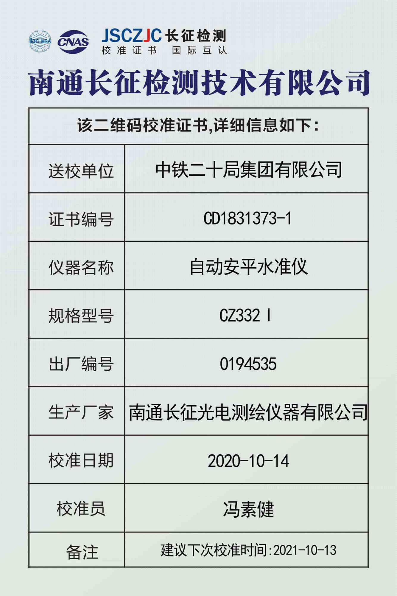 CD1831373-2 中铁二十局集团有限公司 -