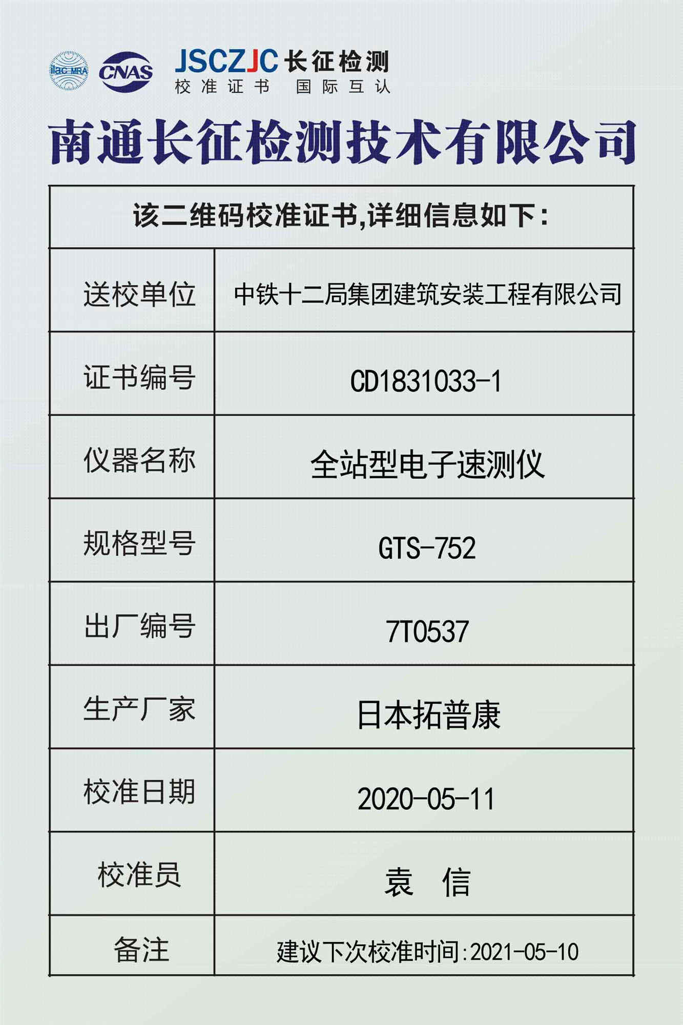 CD1831033-7 中铁十二局集团建筑安装工程有限公司 -