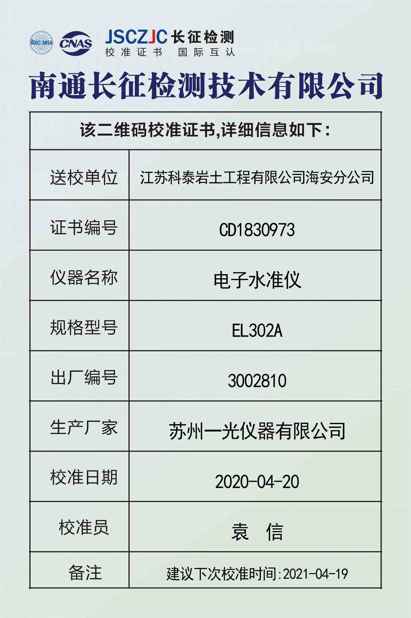 CD1830973 江苏科泰岩土工程有限公司海安分公司